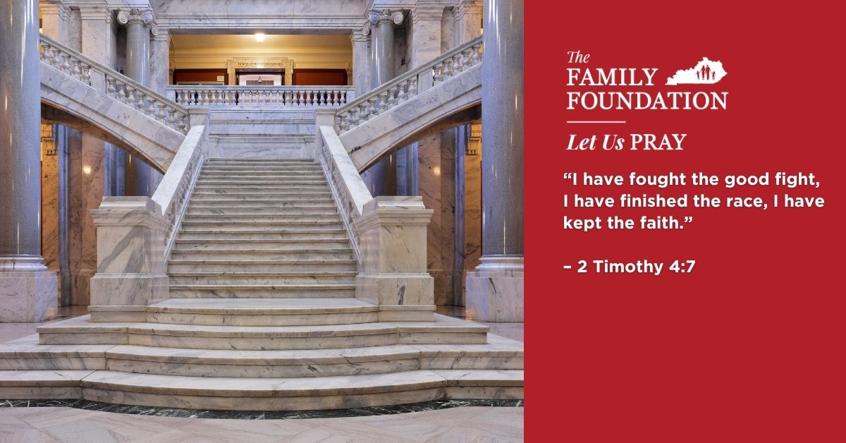 Father, may God-honoring legislation be passed on this last day of the legislative session here in Kentucky. Lord, please convict each Kentucky legislator to pass bills that glorify You and will bring Your blessings on our state. Father, empower us, Your people, to faithfully advocate for legislation that honors You as the legislative session ends later today. In Jesus’ Name, Amen.
