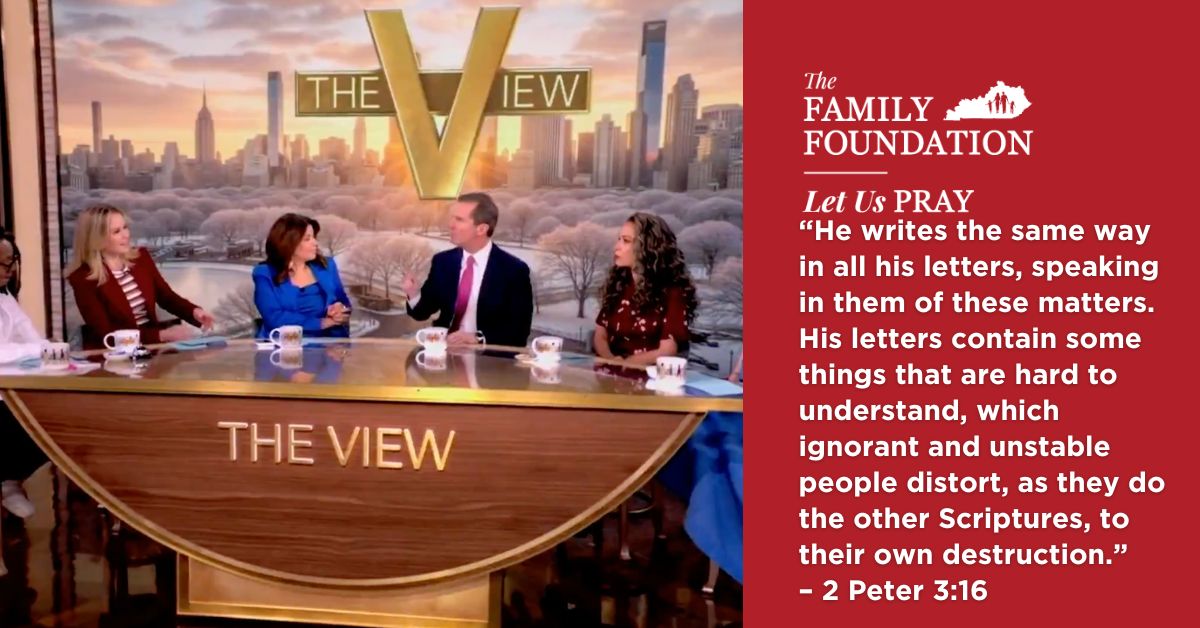 On Monday, Kentucky Governor Andy Beshear made an appearance on The View, where he discussed multiple issues with the hosts. During the interview, he reverted to one of his favorite tactics, treating the Scriptures like a buffet line where you choose what you want and ignore all the rest.