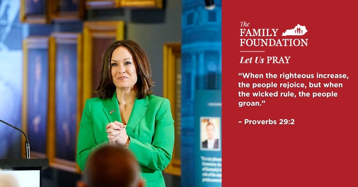 As the race for Kentucky’s next Governor will undoubtedly heat up over the coming months, let us keep the Biblical principle in mind, found in Proverbs 29:2, that when the righteous are in authority the people rejoice, and when the wicked rule the people suffer. May Kentuckians evaluate all the candidates for Governor before election day and cast votes to elect a Governor who leads in righteousness because righteousness exalts a nation (Proverbs 14:34).LET US PRAY…