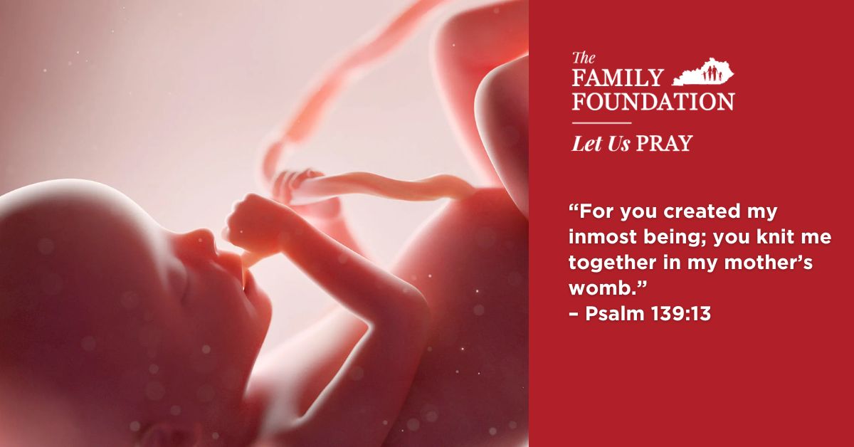Father, we praise You for Rep. Nancy Tate’s steadfast boldness in continually striving to pass this important bill. Lord, may each member of the Kentucky General Assembly vote in favor of House Bill 359. Father, we pray that this bill will be used powerfully throughout our public schools in Kentucky to enlighten our students to see that even at the earliest stages of an embryo’s development, a human person exists. In Jesus’ Name, Amen.